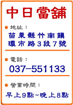 - 苗栗當舖借款免留車,高價收當、合法利息-苗栗中日當鋪2022-04-15